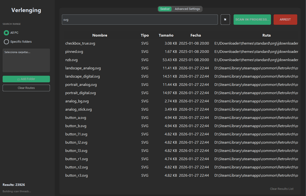 The search runs in the background, so the interface doesn't freeze and you can view results while it's still searching.